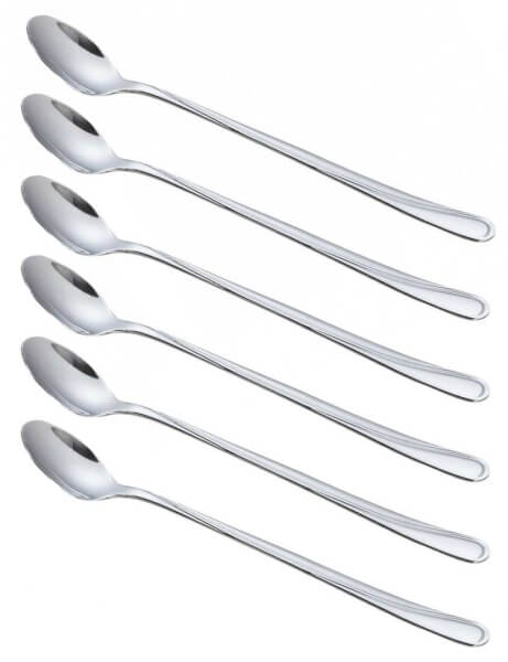 – 6 łyżeczek koktajlowych ze stali nierdzewnej polerowanej na wysoki połysk.