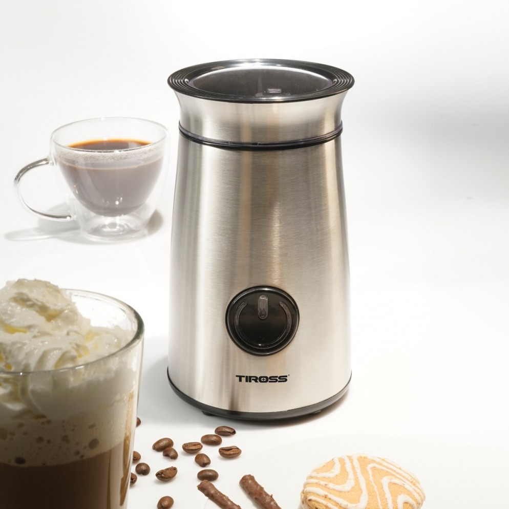 Młynek elektryczny do kawy TS-532 z przykuwającą wzrok chromowaną obudową sprawdzi się w kuchni osób dbających o detale. Wyposażony w ostrza ze stali nierdzewnej oraz pojemnik na 50 gram ziaren kawy, gwarantuje sprawną i wydajną pracę, w mgnieniu oka przygotowując kawę dla całej rodziny. Wygodny przycisk włączania oraz pokrętło przełączania na tryb pulsowania gwarantują komfortowe użytkowanie oraz w 100% dokładne mielenie. Wygodny i ukryty schowek na kabel pozwala przechowywać młynek w szafkach bez plączących się kabli. W zestawie z pokrywką umożliwiającą działanie młynka, dzięki której użytkowanie jest w pełni bezpieczne i nie generujące zanieczyszczeń.