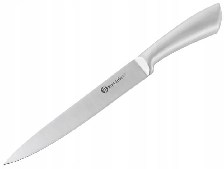 Nóż EH-6552 to wysokiej jakości narzędzie kuchenne, wykonane z trwałej stali nierdzewnej. Charakteryzuje się doskonałą ostrością i wytrzymałością, co czyni go idealnym do precyzyjnego krojenia różnorodnych składników.