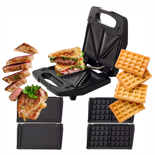 – Jedno urządzenie łączące w sobie 3: opiekacz do kanapek, gofrownicę oraz grilla