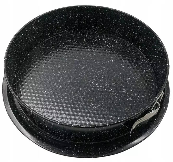 Tortownica KH-1783 z odpinanym pierścieniem do pieczenia ciasta. Dzięki możliwość rozpięcia pierścienia mamy możliwość łatwego wyjęcia z formy naszego wypieku. Tortownica pokryta jest powłoką marmurkową zapobiegającą przywieraniu wypieków.