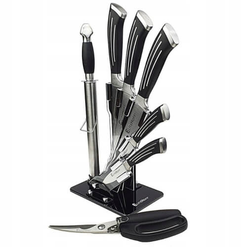 Zestaw noży HF-6845 to popularny produkt, który może być używany zarówno w domach, jak i profesjonalnych kuchniach. Charakteryzuje się różnorodnością noży, które obejmują wszystkie podstawowe narzędzia niezbędne do codziennego gotowania.